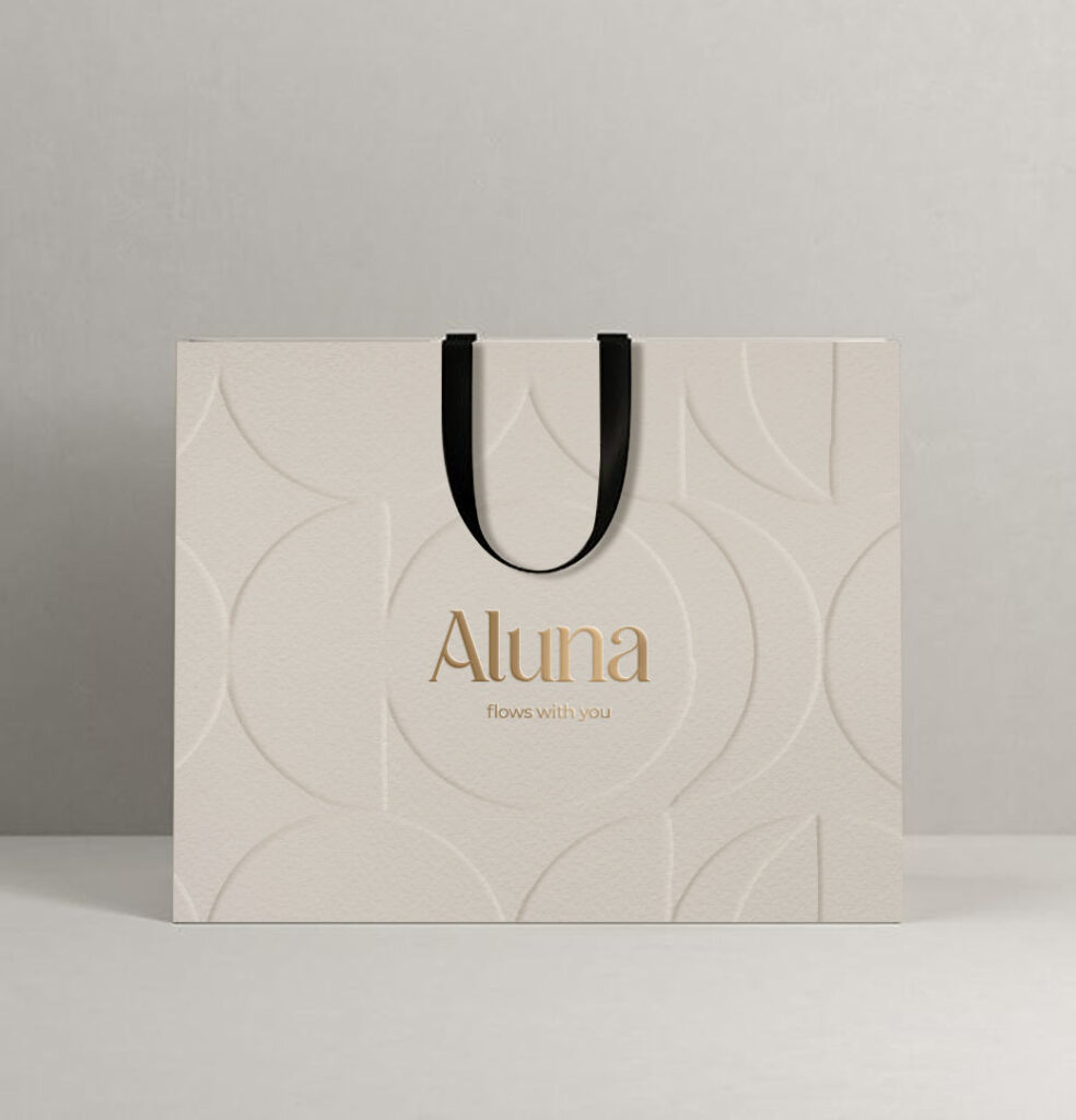 Se desarrolló un sistema gráfico propio inspirado en las diferentes fases de la luna, eje conceptual y creativo de la marca. A partir de este recurso visual se diseñó un patrón distintivo, que actúa como hilo conductor del universo de Aluna y refuerza su identidad. Este lenguaje gráfico se aplicó de forma consistente en todos los soportes; papelería, packaging e interiorismo, logrando una marca altamente reconocible, coherente y diferencial en cada uno de sus puntos de contacto.